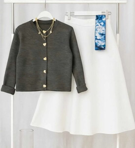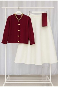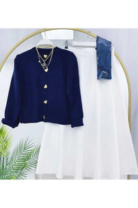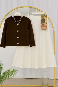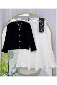 » Kalp Düğmeli Scuba Etekli Takım Krem&Siyah