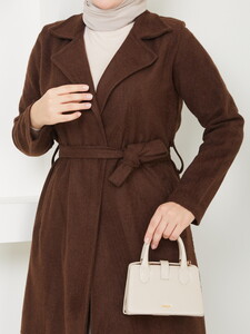 Kruvaze Yaka Kemerli Kaşe Kahve,Kruvaze Yaka Kemerli Kaşe Kahve,